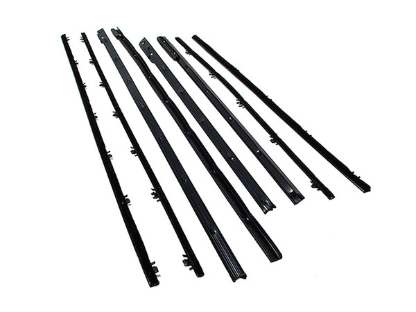 This eight piece set includes inner and outer window felt sweeper weatherstrips for each side window and quarter windows. The parts wipe the side windows when the glass is lowered. These are considered the authentic versions of these seals as they are made from original factory style material.